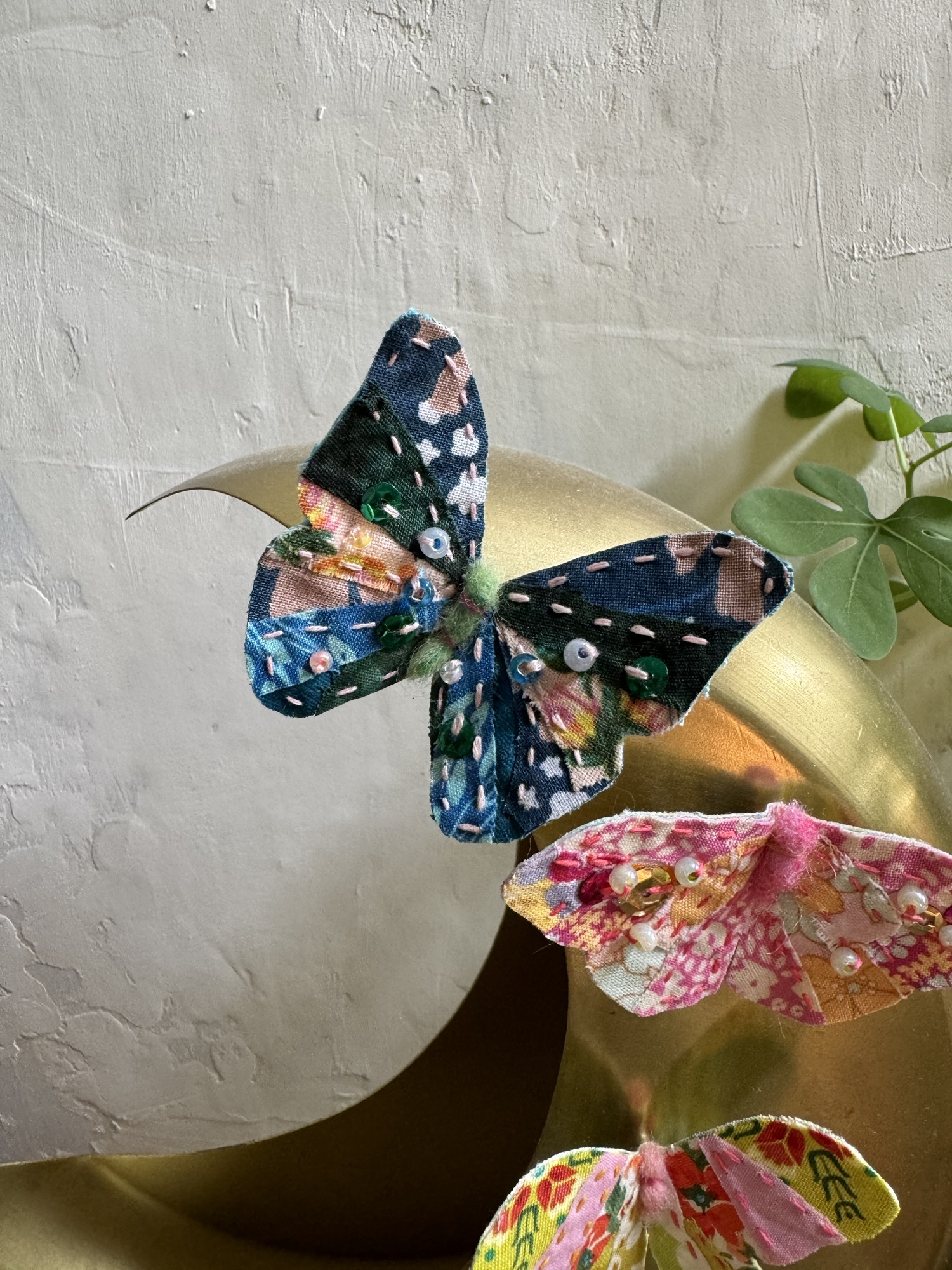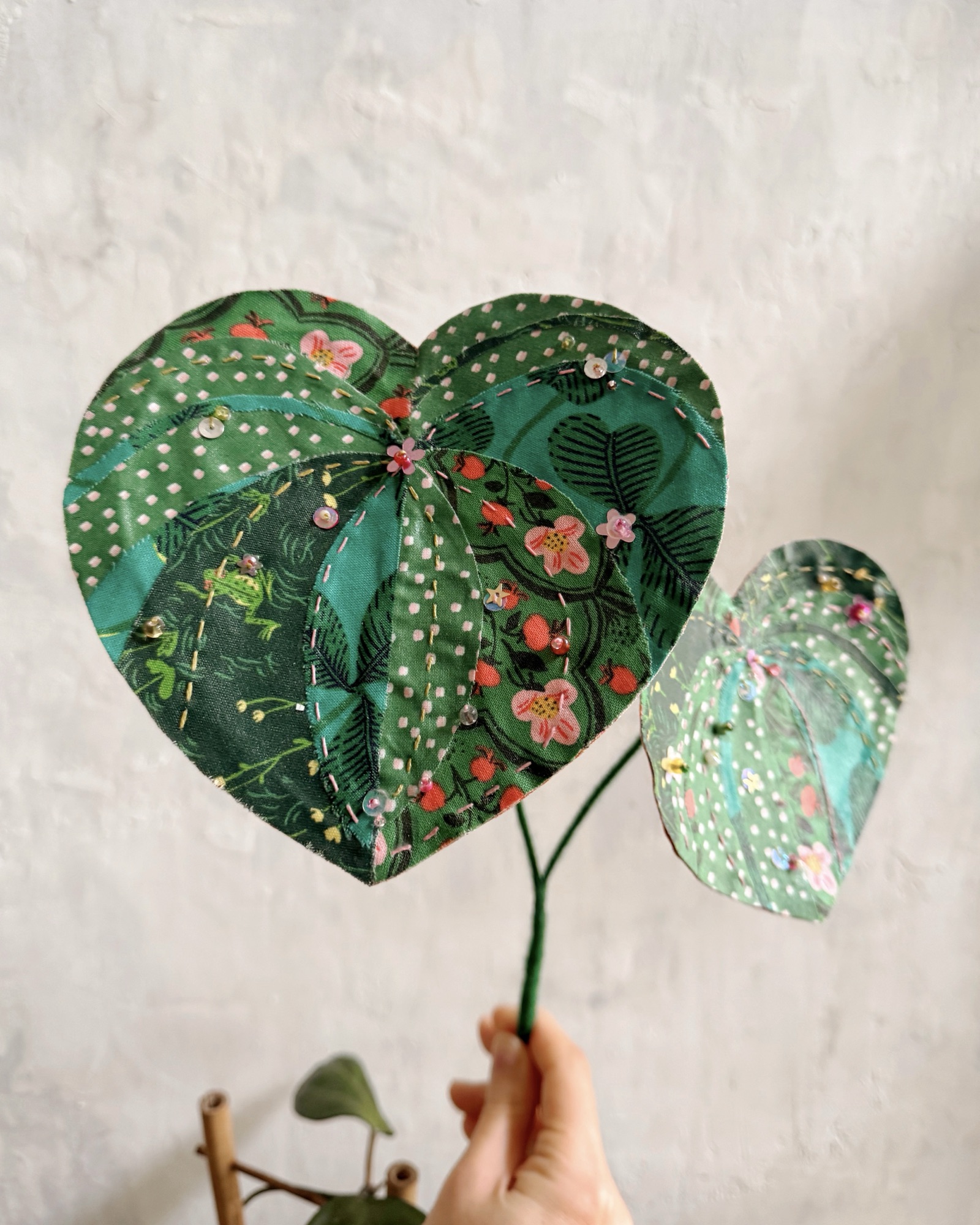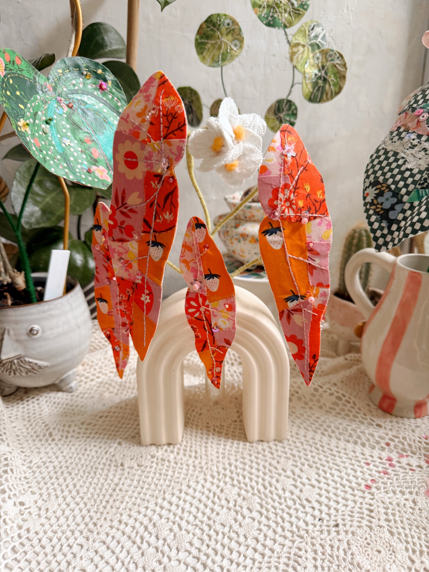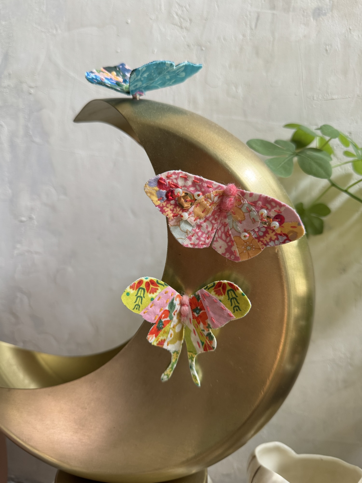 To satisfy my never ending wishlist of wonderful plants, I stitched and sculpted whimsical plants grown from fabric and wire. I love filling my indoor garden with these mixed media stems and winged creatures.